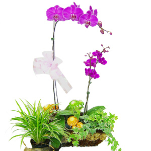 (蝴蝶蘭雙株.人造草菇.迷你小品)居家擺飾.公司行號開幕.喜慶.高陞.送禮自用兩相宜.